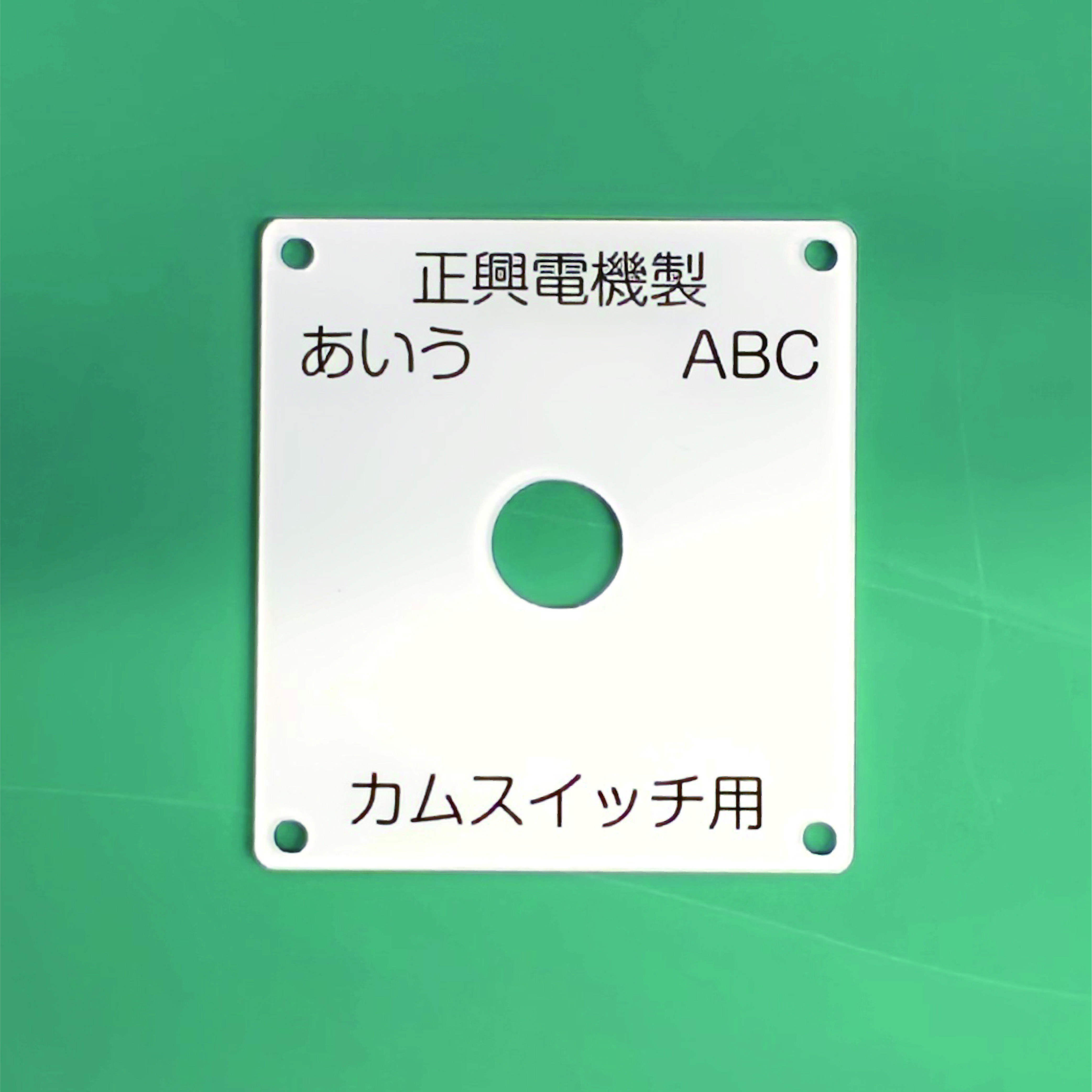 カムスイッチ用銘板/ダルマ銘板/メガネ銘板/トグルスイッチ用銘板/スナップスイッチ用銘板/ダイヤル銘板/目盛板/ボリューム銘板/ボタンパネル